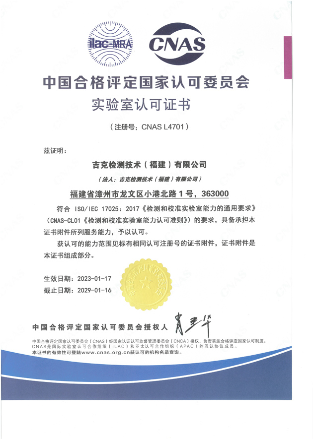 吉克檢測技術(shù)(福建)有限公司,位于福建省漳州市龍文區(qū)小港北路1號,于2019年8月注冊成立,是一家獨立的第三方檢測公司。公司已經(jīng)通過檢驗檢測機構(gòu)計量認證(CMA)、農(nóng)產(chǎn)品質(zhì)量安全檢測機構(gòu)資質(zhì)認證(CATL),獲得中國合格評定國家認可委員會(CNAS)認可。公司本著“嚴謹、規(guī)范、高效、協(xié)作”的原則和對客戶及社會高度負責(zé)的精神,充分利用本公司優(yōu)質(zhì)的檢測環(huán)境、先進的檢測設(shè)備和專業(yè)的技術(shù)人員,第一時間為客戶提供科學(xué)、公正、準確的檢驗檢測報告。       公司實驗室面積1100多平方米,儀器設(shè)備兩百多臺(套),固定資產(chǎn)一千多萬元,在職員工31人,技術(shù)人員中的中高級職稱及同等能力人數(shù)占60%以上。我們的服...